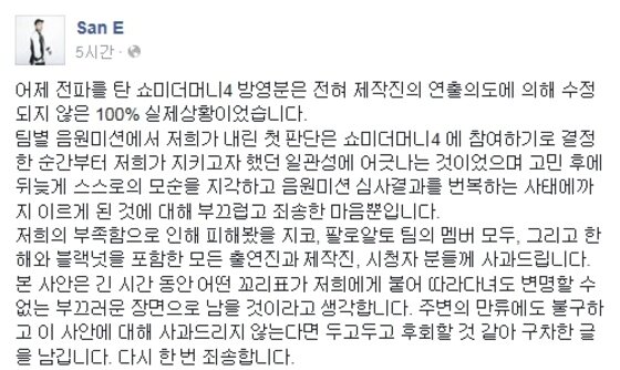 쇼미더머니4 산이 블랙넛 탈락 번복 부끄러운 장면 사과